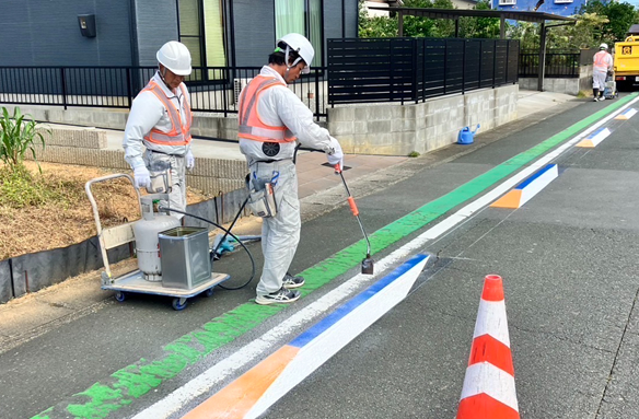 未経験からスタートして、一生モノの技術を身につけられる仕事です。道路標識や区画線、ガードレールなど、街づくりに欠かせない交通安全施設の設置工事に携わる中で、実践的なスキルが自然と身につきます。