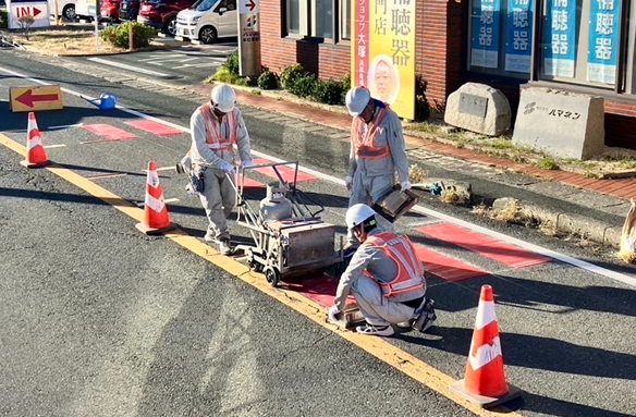 | 事業内容 | 交通安全施設工事 ○道路表示・区画線 ○道路標識 ○道路反射鏡 ○ガードレール・防護柵 ○滑り止めカラー舗装 知事許可番号 第16996号 全国道路標識・表示業協会員 |