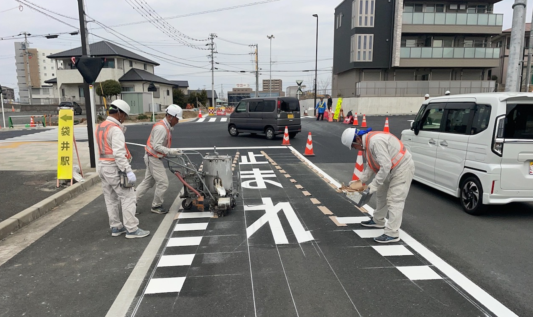 未経験からスタートして、一生モノの技術を身につけられる仕事です。道路標識や区画線、ガードレールなど、街づくりに欠かせない交通安全施設の設置工事に携わる中で、実践的なスキルが自然と身につきます。